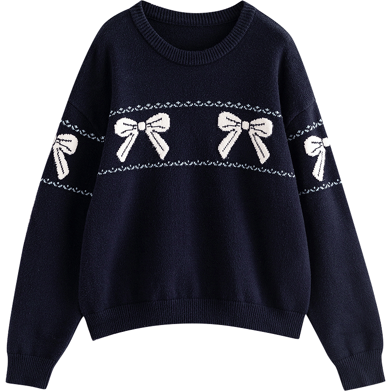 冬天的北风现已悄然降临,时髦与保暖的完美结合成了每位女人的寻求。在这个时节,初语毛衣女2025冬天新款蝴蝶结提花复古减龄圆领微宽松保暖上衣,将会是你衣橱中不可或缺的单品。这款藏青色毛衣不只展示了高雅的气质,更为你带来了温暖与舒适。